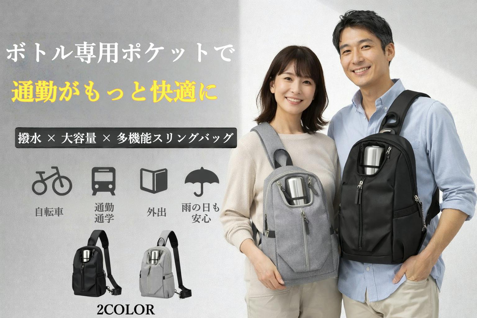 通勤・自転車移動・小旅行まで使える大容量×撥水仕様のスリングバッグ。