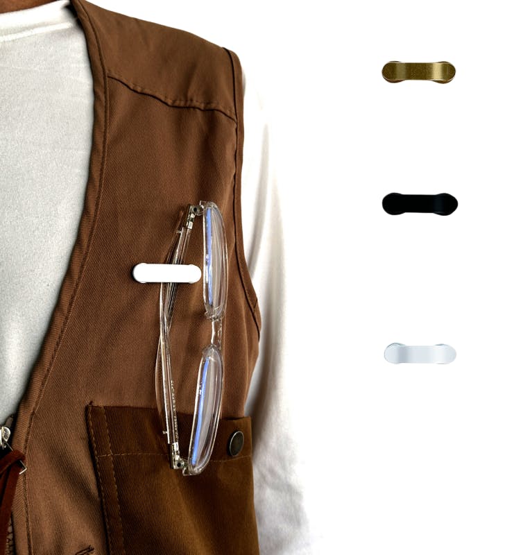 残り5日となりました!!外したメガネを“もう無くさない”服に穴を開けず1秒固定できるマグネット式ホルダー