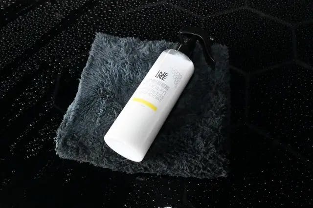 ①車体もしくはマイクロファイバータオルに本品を吹き付けます。