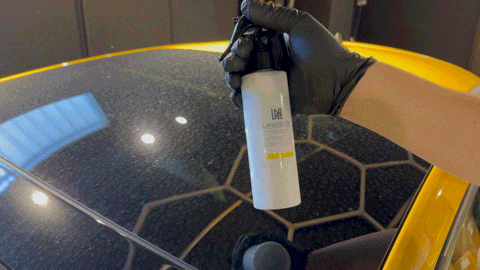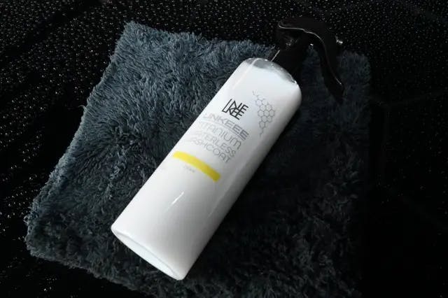 水なしで使えるチタニウムウォッシュコートなら、出先でも、急な雨の後でも瞬時に車がピカピカに。