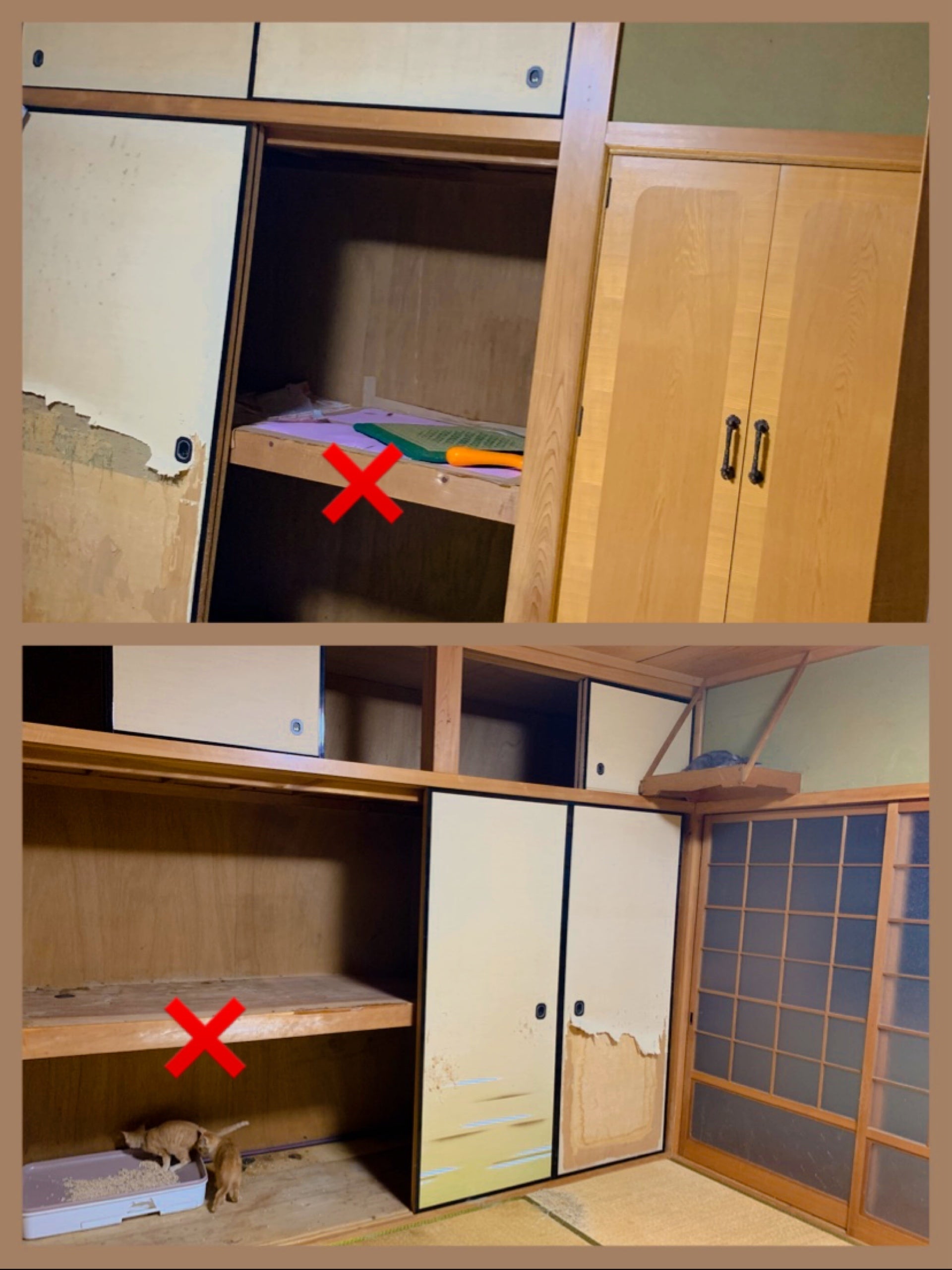 ①2部屋にある押入れの仕切りを取り除く(❌2箇所)