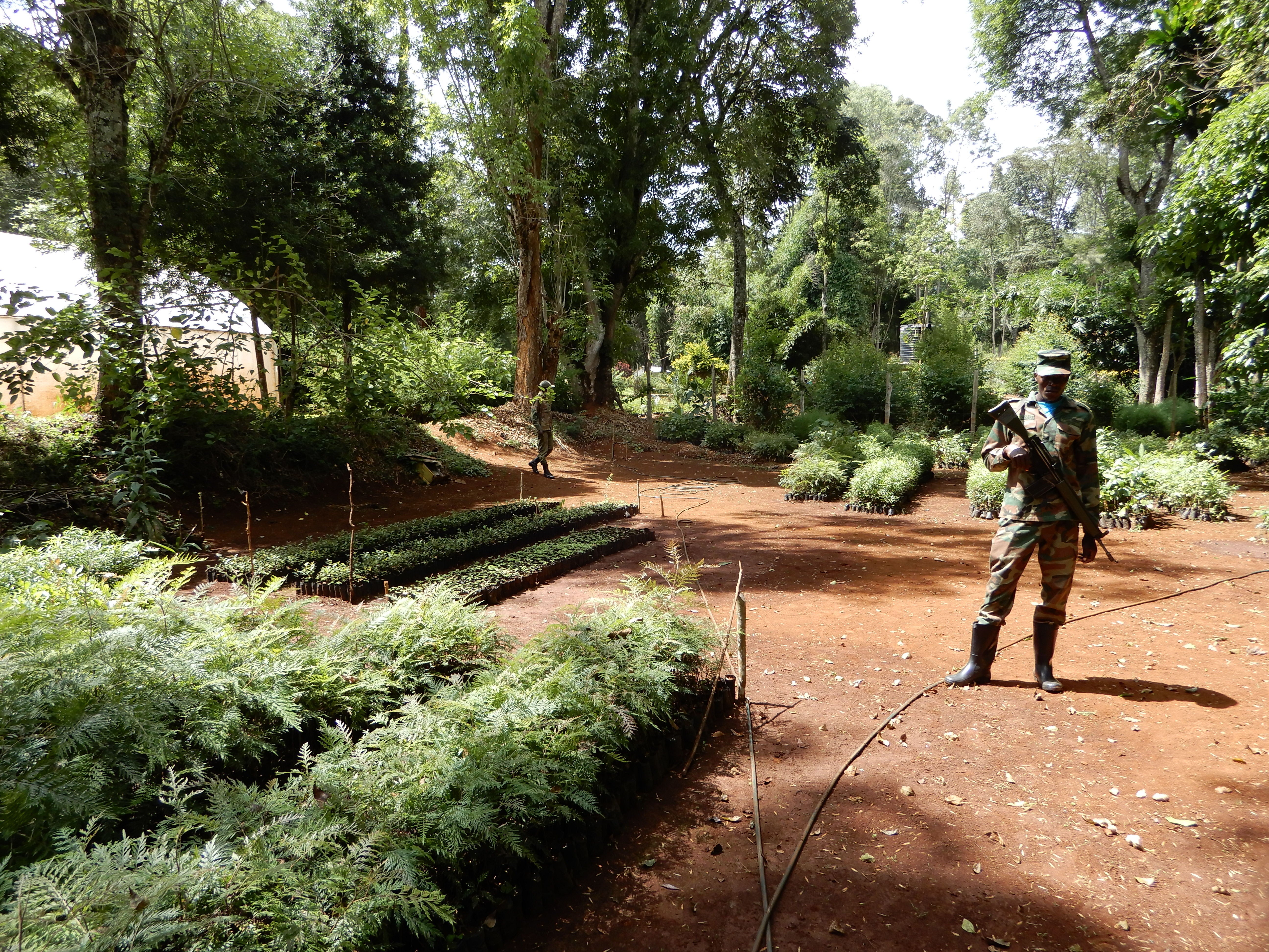 森林官はライフル銃を携行していましたグリーンベルト運動はケニア森林局(KFS )とも連携し、この地域一帯32㌶の森の保全活動を続けています。私たちが訪れる2カ月前には以前に植えた3万5000本の樹木周辺の除草作業を行っていました。