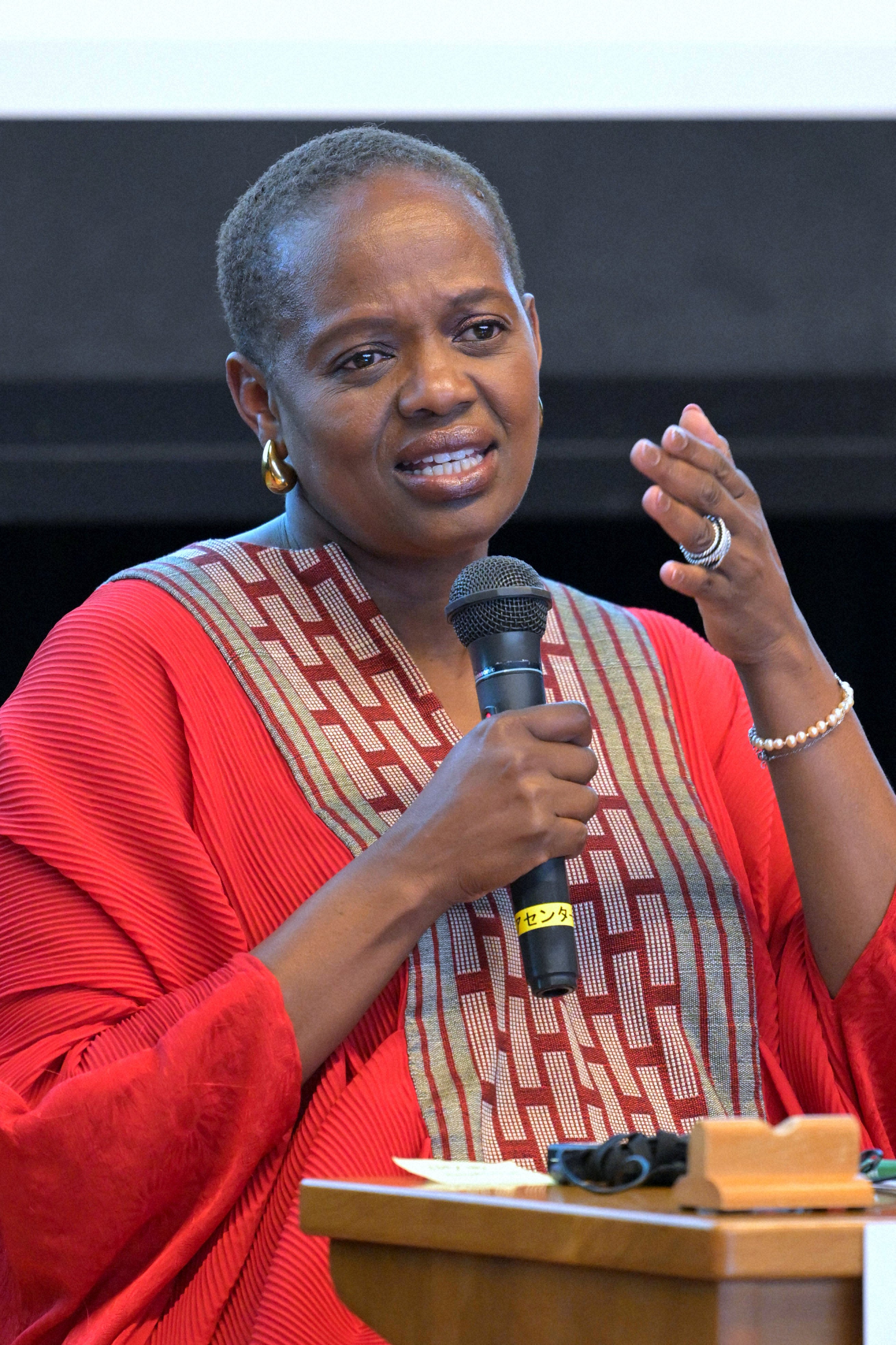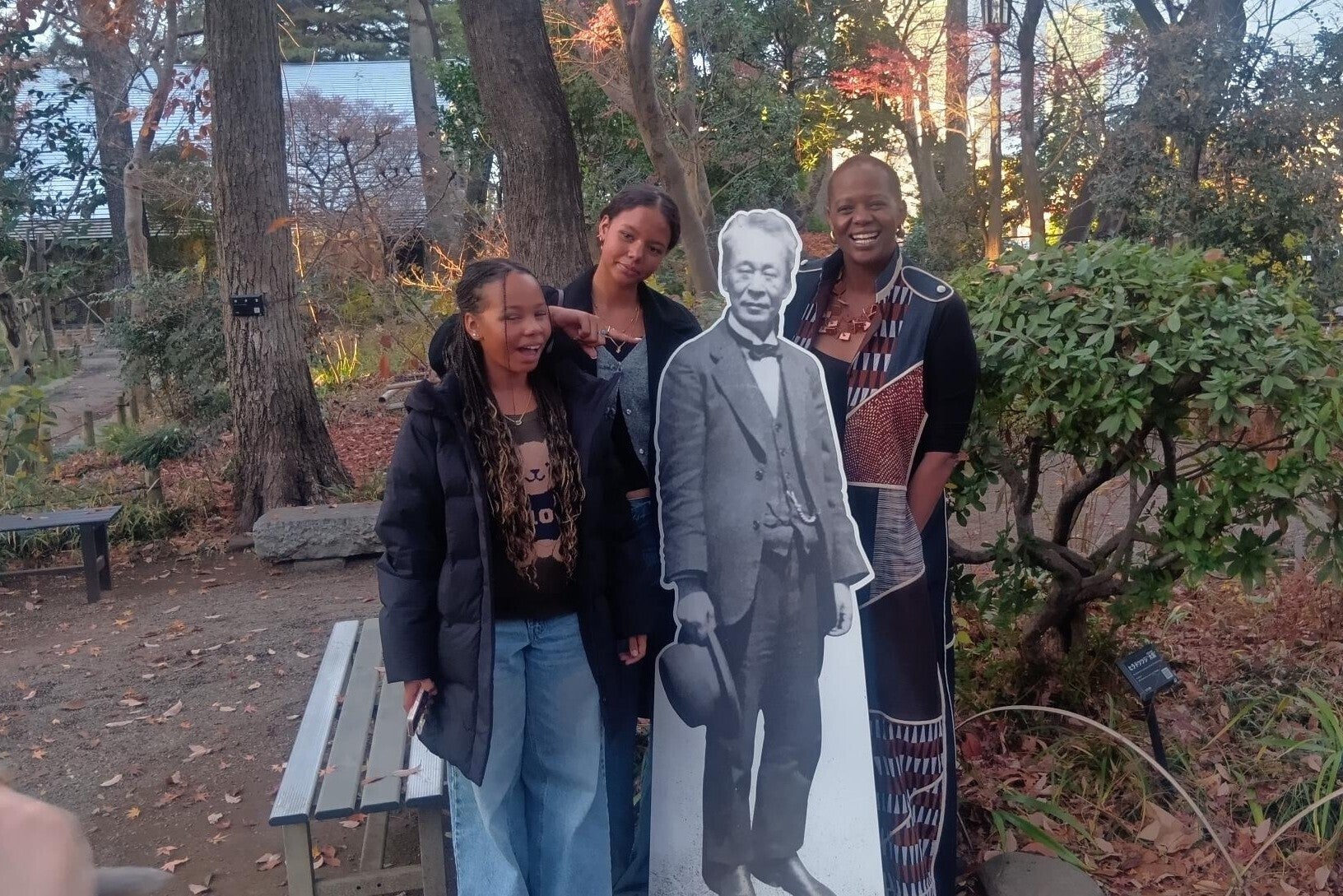 シンポジウムで発言するワンジラさん=2025年12月、都内でシンポジウムの翌日、都内にある二つの施設にワンジラさんを案内しました。練馬区にある牧野記念庭園記念館と新宿区にある林芙美子記念館です。両館とも、その場所にあった偉人の邸宅を区が修復し整備した施設で、一般開放しています。ワンジラさんは2人の娘とともに興味深げに見学し、しきりに写真を撮っていました。