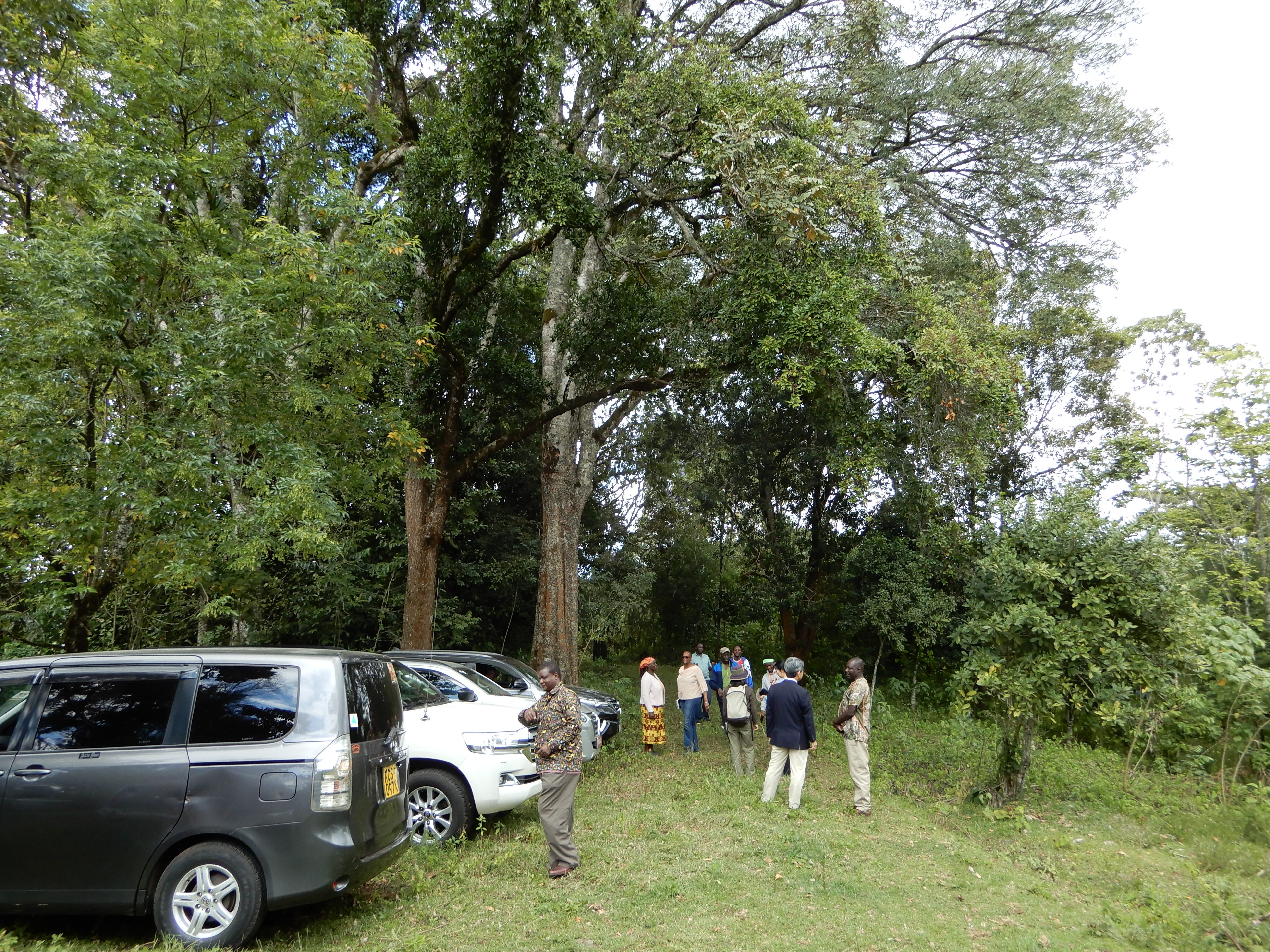ナイロビから北東に車で約4時間、ケニア山の麓に目的地はありました。「マウントケニアプロジェクト」と名付けられた活動の対象地域・チュカです。ライフル銃を携行した森林官らの先導で着いた場所は強固なゲートで仕切られていました。「ここから先が森林保護地域です。違法伐採が後を絶たないので、電気柵が設置されています」と、グリーンベルト運動のドロシー・アセヨ事務局長が説明してくれました。