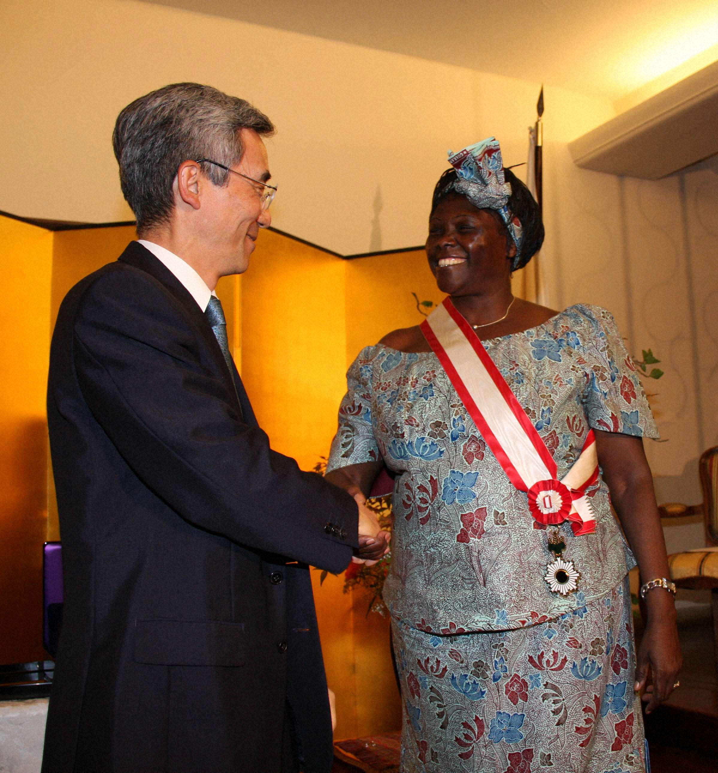 マータイさんの活動に対し、日本政府は09年、「環境保護に関する意識向上や日本の国際的地位の向上に貢献した」と評価し、旭日大綬章を授与しました。