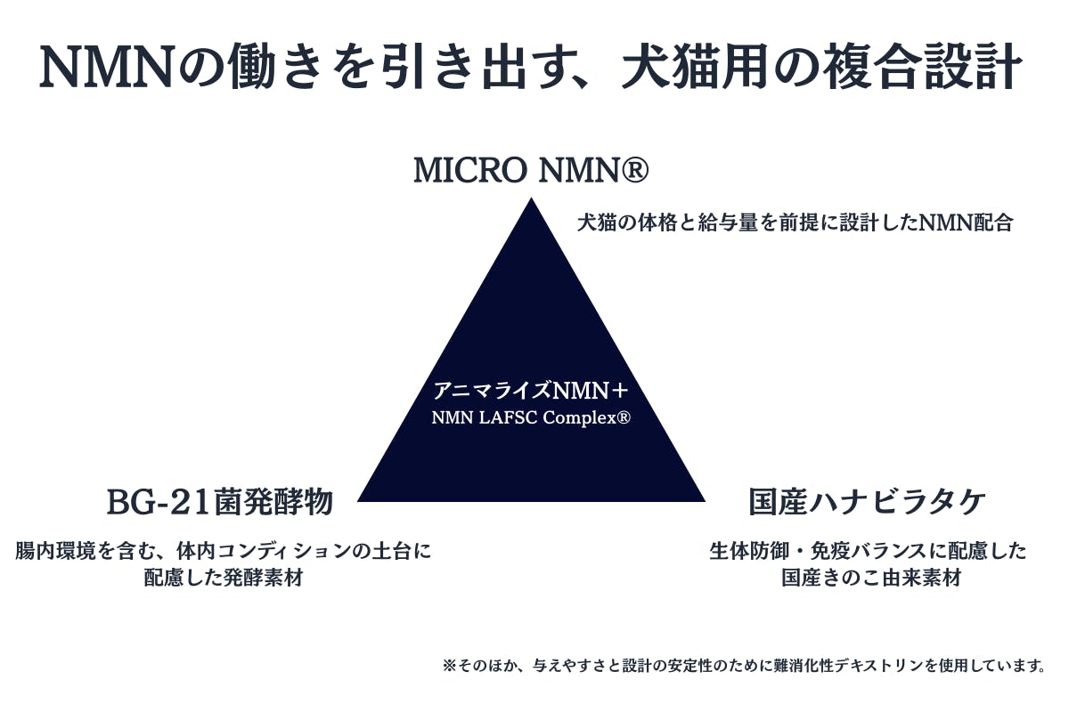 そうした試行錯誤と現場の声の積み重ねの中から生まれたのが、「アニマライズ NMN+」という設計思想です。