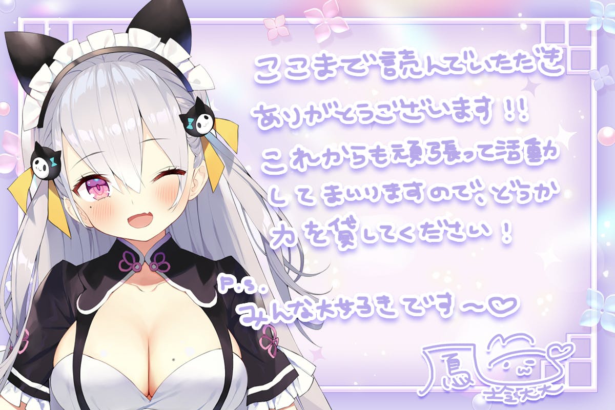 今までは皆様のご支援のおかげで、Live2D通常モデル5体、ASMR用モデル1体、3Dモデル6衣装と色んな姿で活動を続けさせていただきました。しかし今回の急の出来事で全てのモデルや過去依頼した制作物が使用できなくなり、損害額は軽く計算しただけで300万円超えです。