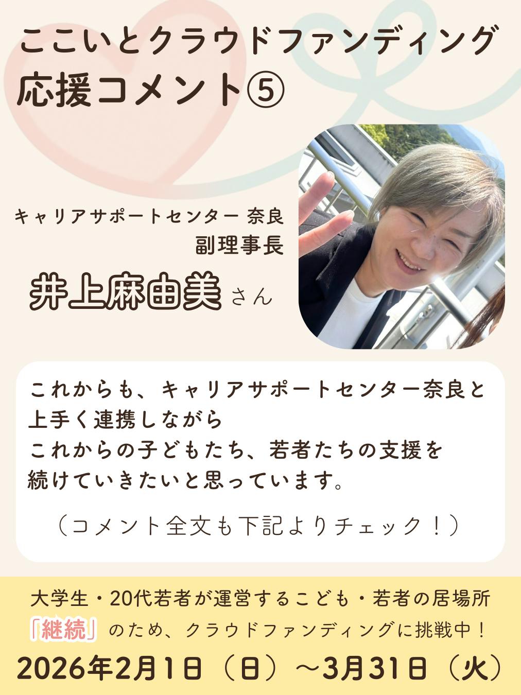 NPO法人 キャリアサポートセンター奈良の井上さんから、応援コメントをいただきました!