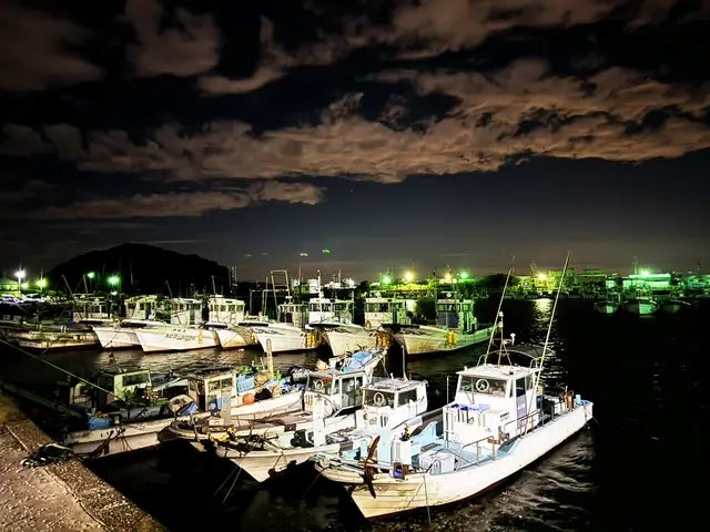 午前4時。暗闇の中で漁師たちの仕事は始まります。