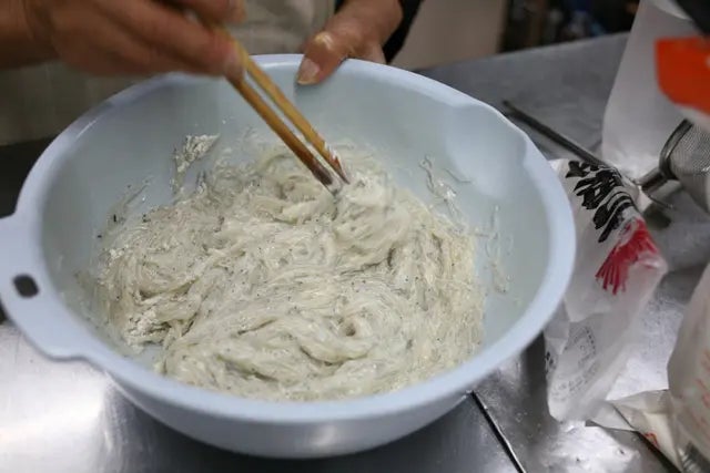 3.生しらすを衣に絡める