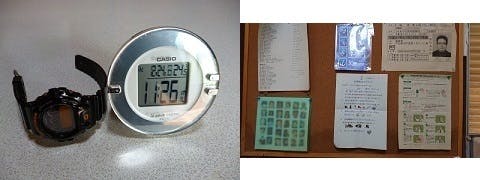 目が覚めて私の「短い一生」が始まります。しかし、最初に確かめるのは、目が覚めたところが「あの世かこの世か」です。身近にあるモノを取ってみます(幽霊なら取れないと思うので)。取れたことに安心したあとは、実際「どこにいるのか」です。以前住んでいた県外でも、今いる沖縄でも部屋のレイアウトは全く一緒です(高次脳機能障がい者は変化を嫌いワンパターンを好みます)。今ならとても寒くなければ沖縄であることに容易に気づきます。そして時計で日時と時間を確認します(カレンダーを見ても何日か分からない)また、時刻合わせや電池交換などの作業が私には難しいので、部屋にある時計は全てソーラー式の電波時計です。次にボードに貼られた拡大コピーされた免許証で「自分の名前」「生年月日」「現住所」を確認(いつも自分の年齢に驚かされています)。同様に貼られた名前入りの家族やよく会う友人・知人の写真リストを見、手帳に書かれた予定を確認して、やっと動き出すことが出来ます。