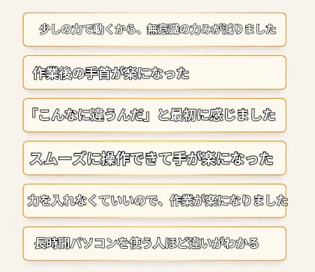マウスとの摩擦を抑えることで、手首に負担をかけない自然な動きを実現させることができます。