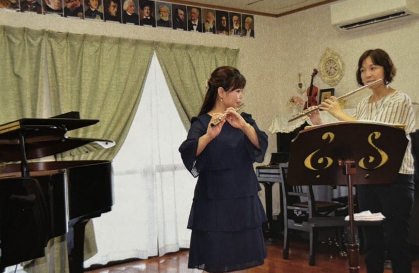 また、島で「なかよし音楽教室」を主宰する、ピアノとフルートの先生でもあります。