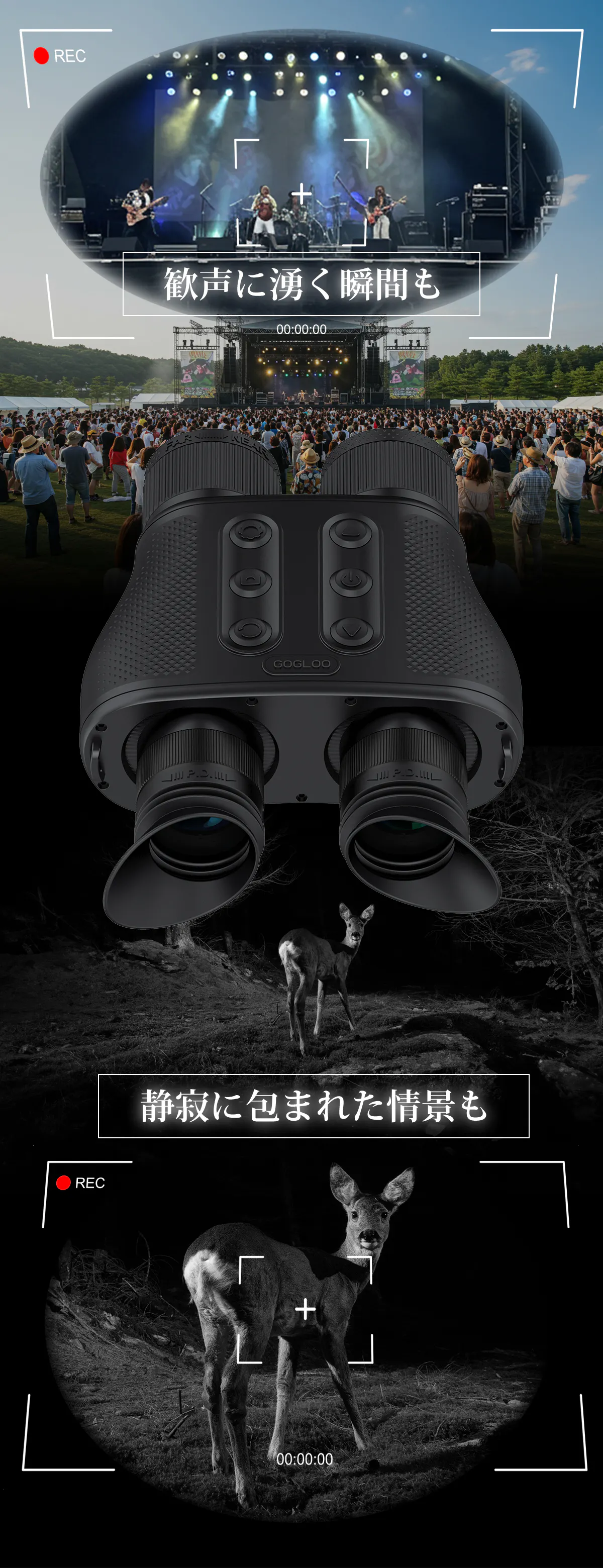 GOGLOOF16が昼夜を問わず“感動の瞬間”を逃さず記録する。フェス参加やスタジアム観戦、バードウォッチングから動物観察まで、あなたの視界を映像に変えるパートナーです。