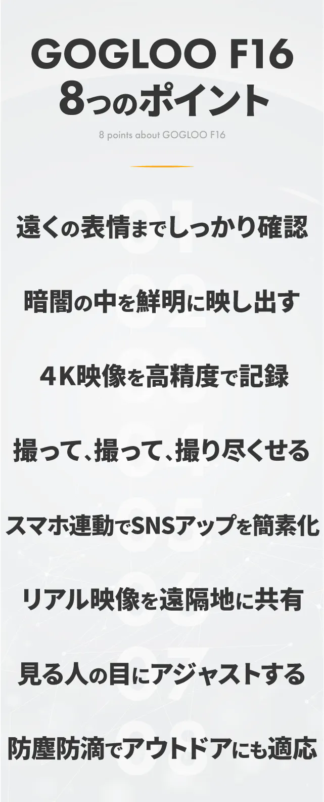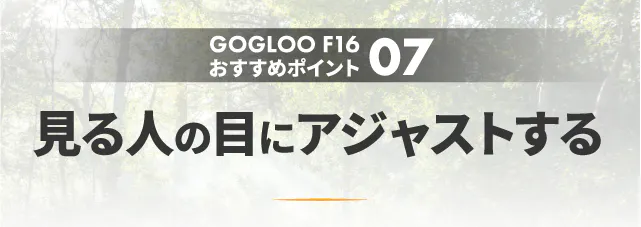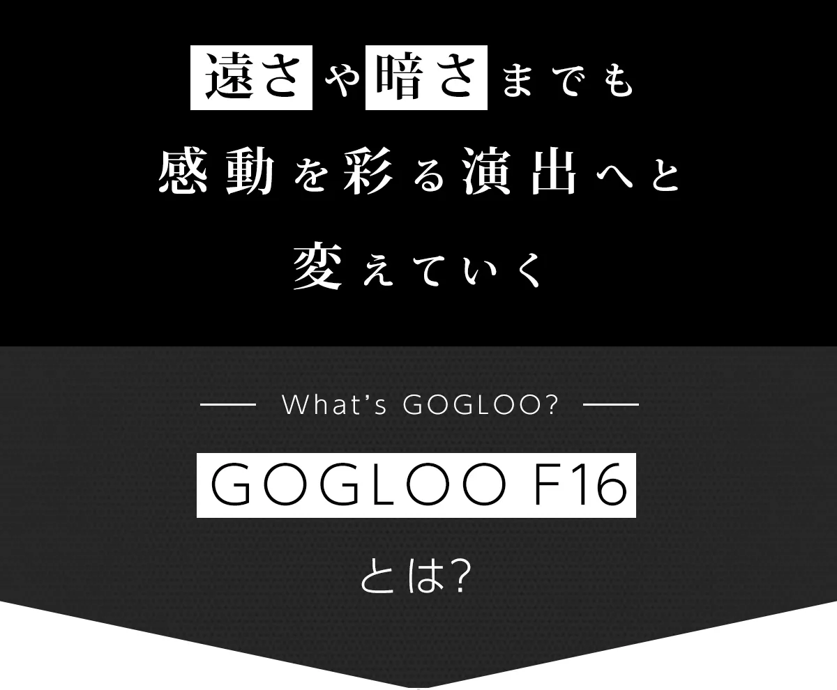 GOGLOO F16は、その感動を忘れない一瞬に変えるためのビジョン。最新の技術で、「見えないを見る」体験を可能にしました。
