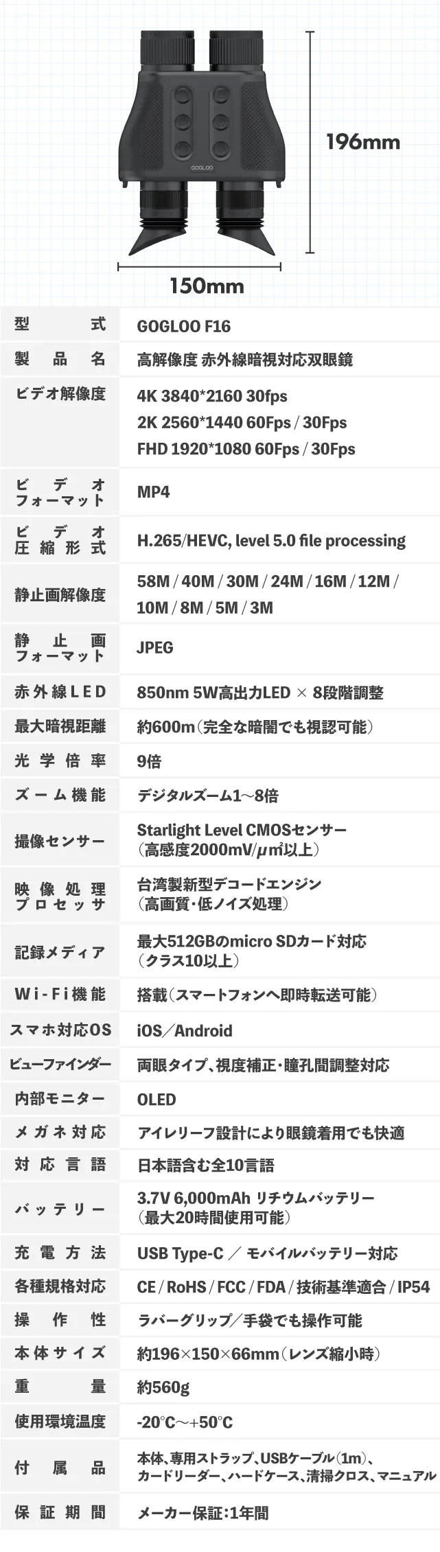 そのノウハウと開発力を活かし、新たに生まれたのがこの【F16 高解像度赤外線暗視双眼鏡】です。