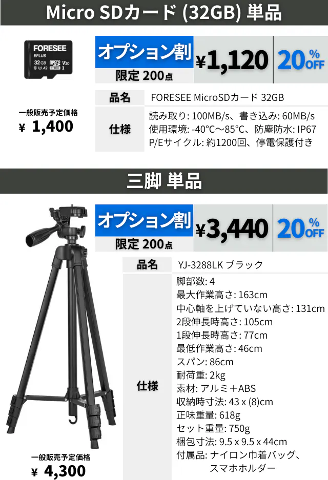 F16なら、最大512GBのmicroSDカードが使用可能。また6000mAhの大容量バッテリーを搭載し、長時間撮影をしっかりサポートします。(赤外ライト未使用時、最大20時間)