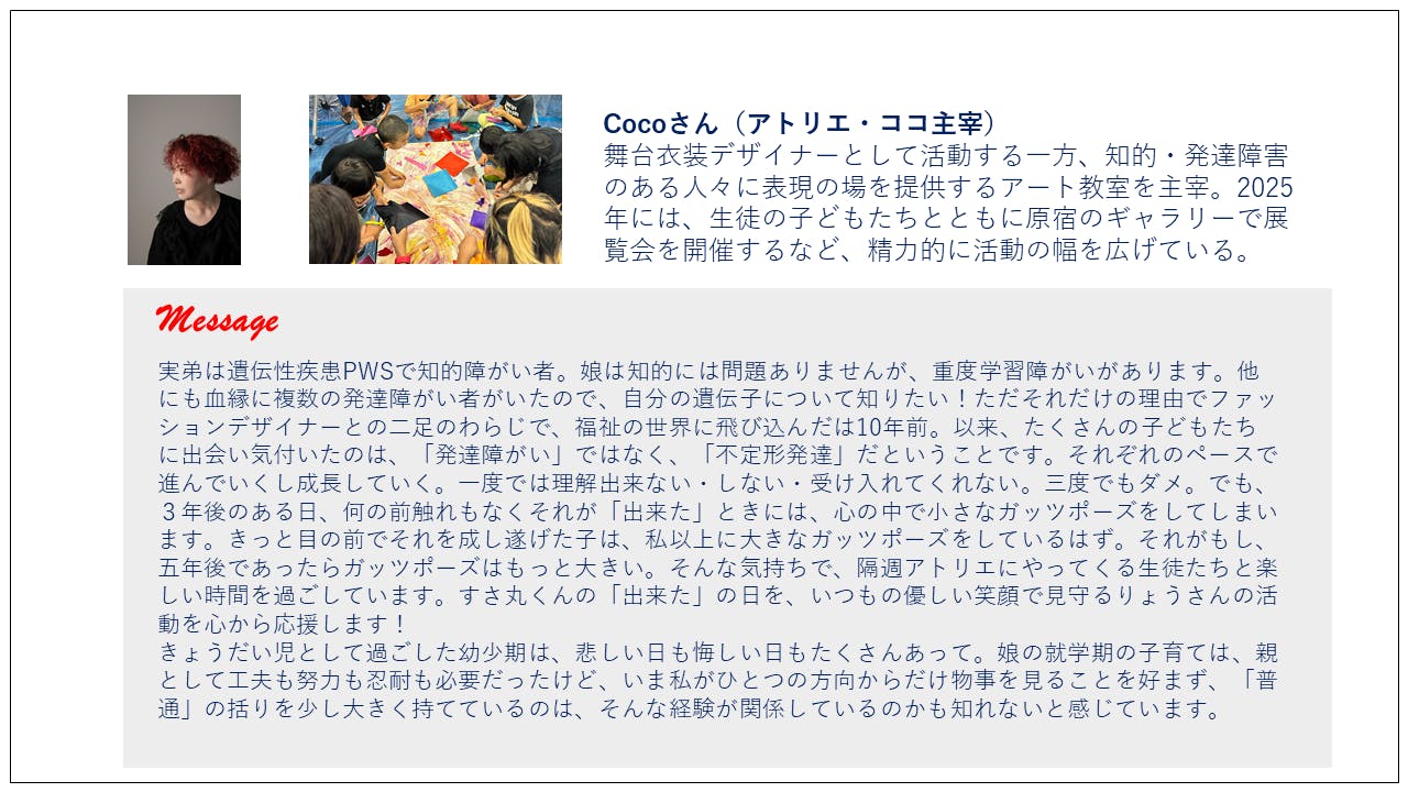 福祉・アート・知育の分野で活動している仲間たちがこのプロジェクトに賛同してくれました。