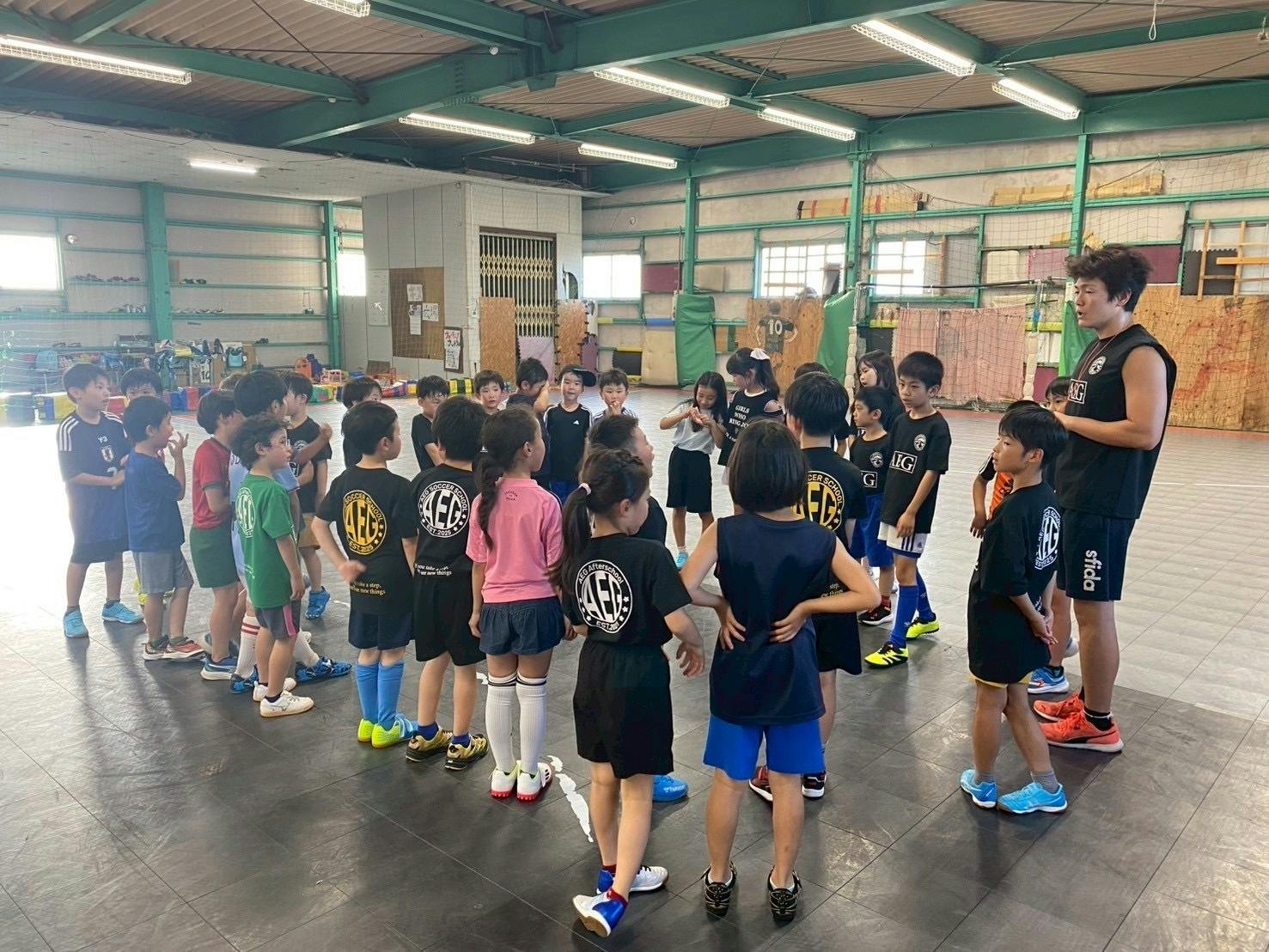 長年にわたり英語学童を運営しており、現在は放課後の学びと運動の両立を目的として、サッカースクールも併設しています。サッカースクールには現在約50名の子どもたち(主に小学生)が在籍し、日々楽しく活動しています。