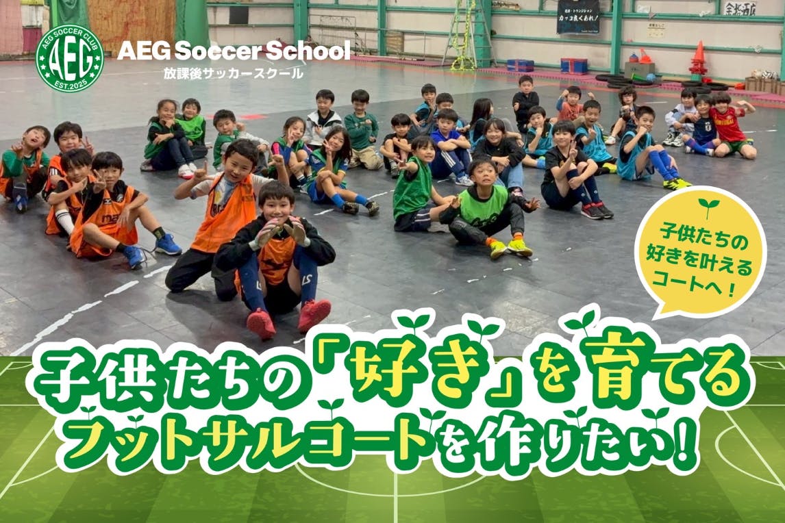 本プロジェクトの目的は、海老名市において、子どもたちが安心して手軽に利用できる人工芝のフットサルコートを2面整備することです。
