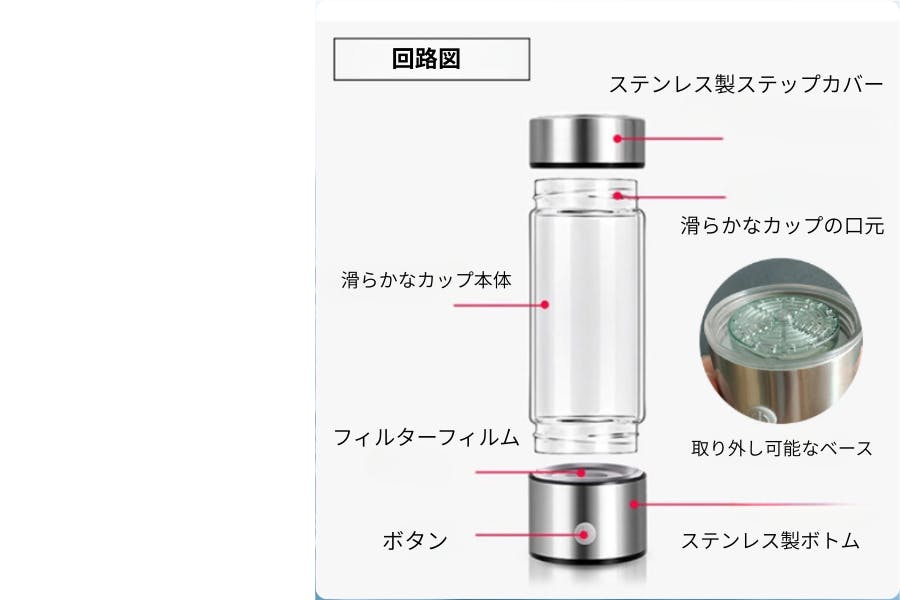 お湯に対応: 高ホウケイ酸ガラスを採用。お湯を使用することで、さらに効率的な水素生成が可能です(※耐熱仕様)。