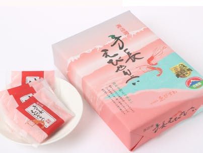 諏訪湖の手長えびをすり身で入れた、サクサク香ばしいえびせんべいです。