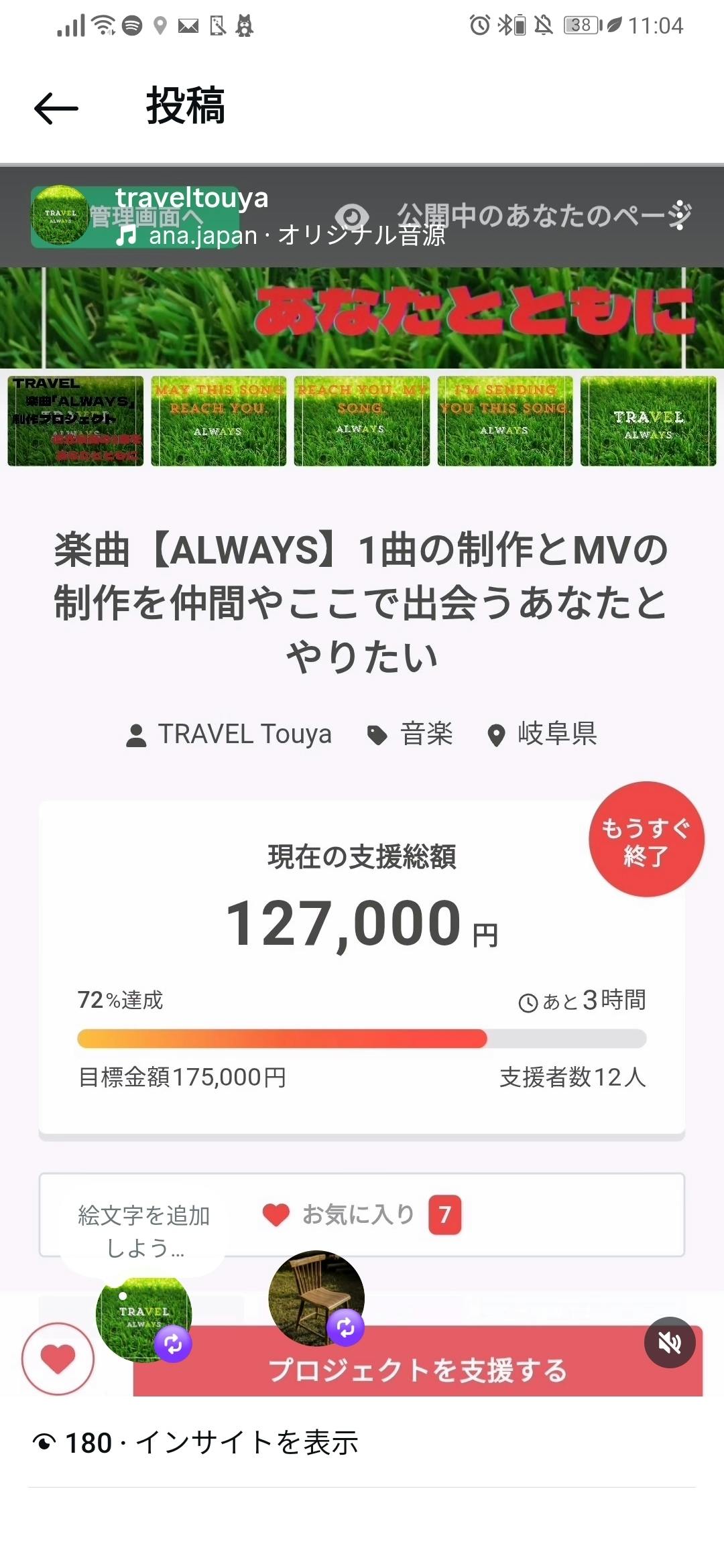 「皆さんのおかげで目標金額達成しました、ほんとうにほんとうにありがとうございました!!」