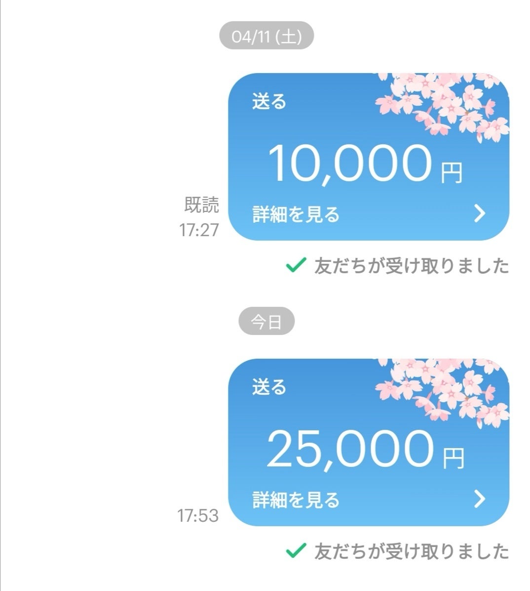 お支払いさせていただきました。