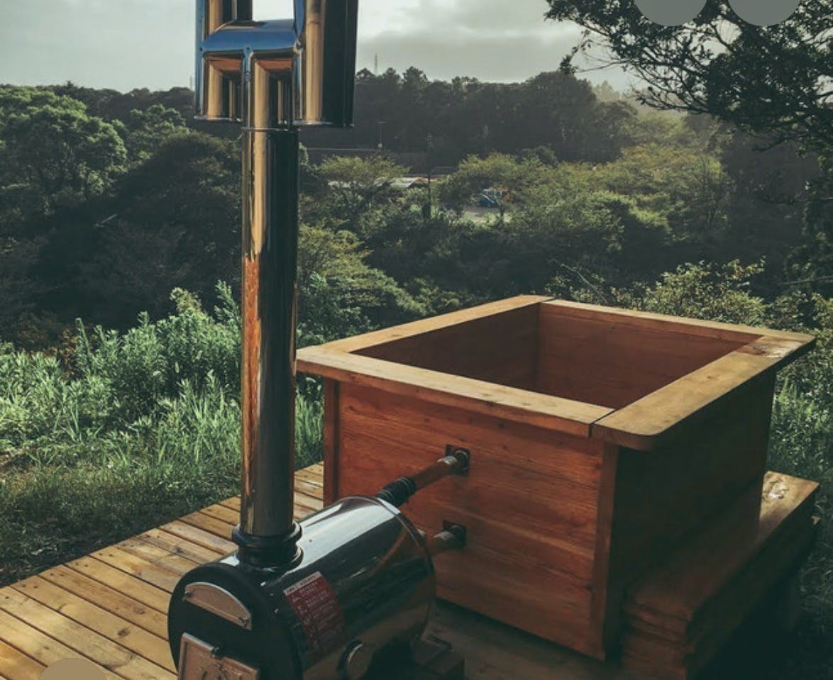 ■ 薪で温める、露天の木風呂