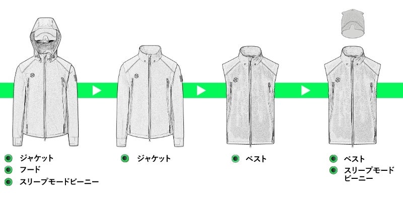 新たな先端の素材、モジュラーデザイン、AI駆動の過熱技術を採用。変化する状況にあわせて楽々と適用するジャケットを開発しました。