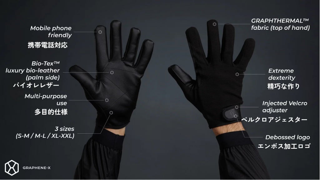Graphene-Xの先進素材に関する専門知識と、アニマルフリーのレザー製品を手掛けるModern Meadowの画期的なバイオレザー技術が融合し、先進的でありながら機能的なグローブ。