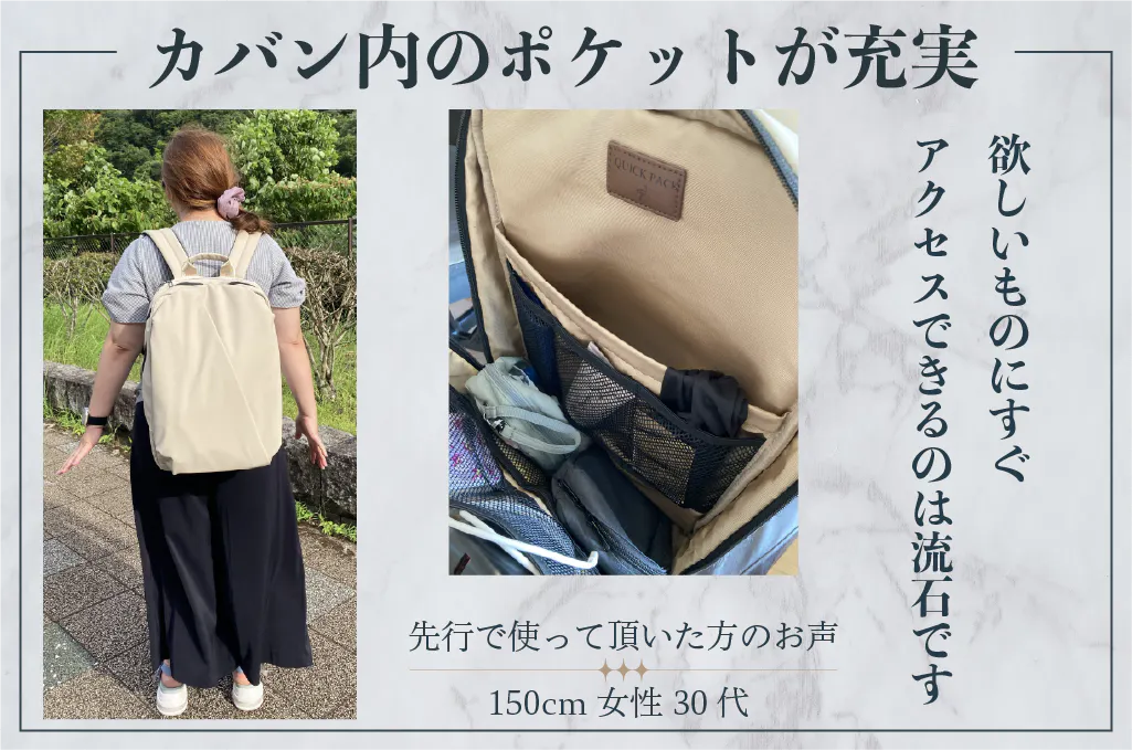 旅行や出張での不満は、大事なものの“収納場所”。