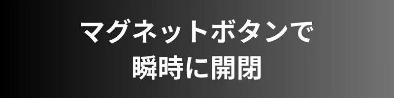 指先で軽く“クイッ”とひねるだけで開き、近づければ“パチッ”と閉まるマグネットボタン。
