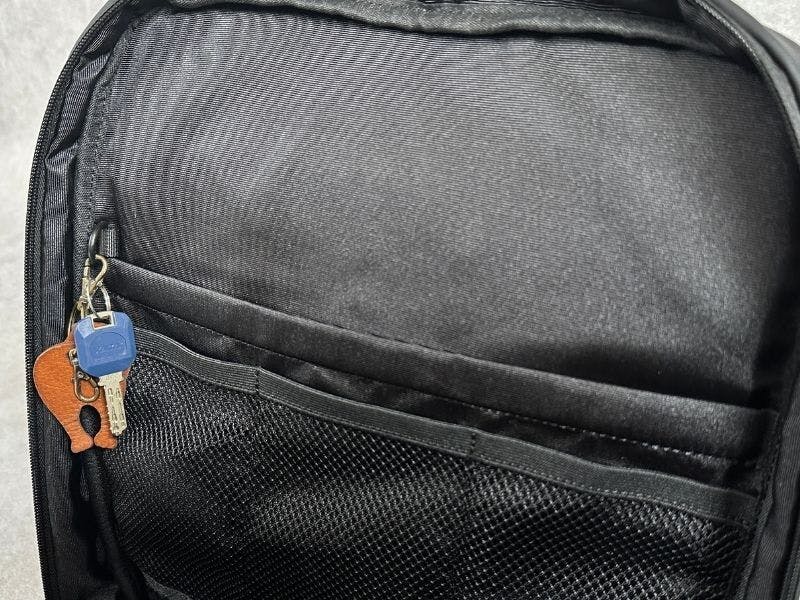 そんな小さい荷物も入れられるように、背面には下から抜け落ちないメッシュポケットがあります。