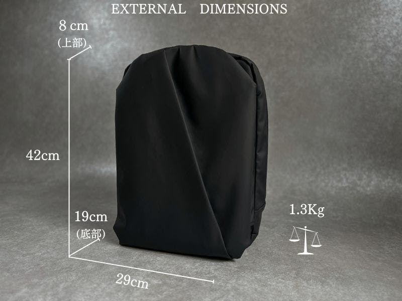 A. 本体はW29xH42xD19cmで、重さ1.3kgです。