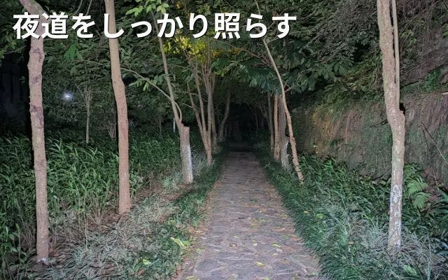 夜道や暗い場所でも、しっかり前方を確認できる明るさです。
