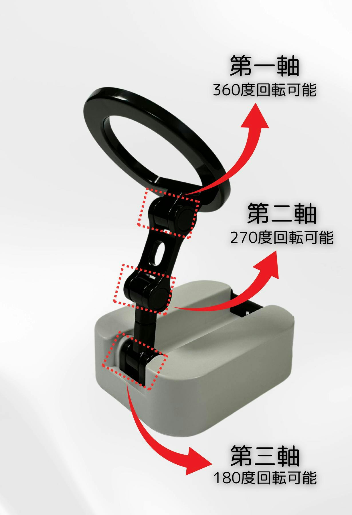 角度調整: 三軸設計+360度回転