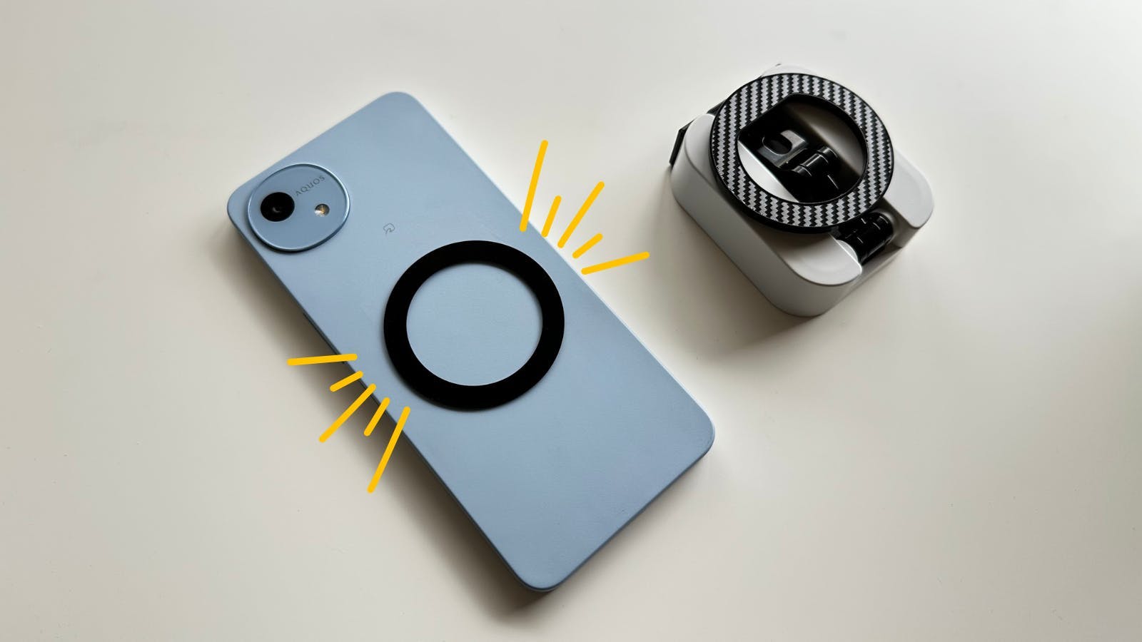MagSafe非対応のスマホでも、付属のメタルリングを使えばしっかり固定可能。