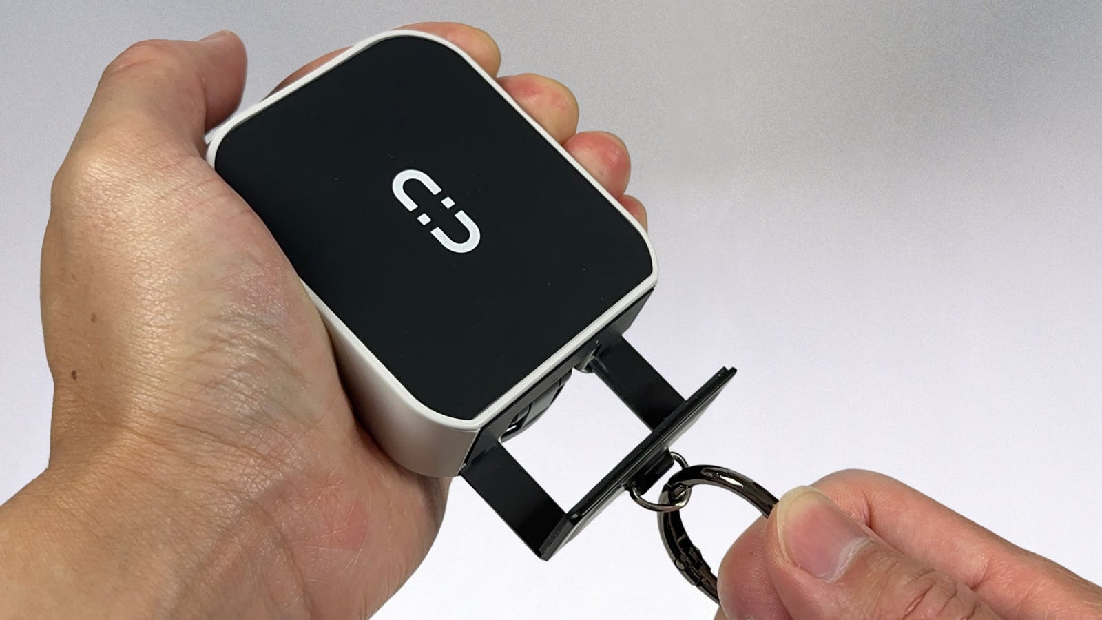 取り外し可能なカラビナ付きで、バッグやリュック、ベルトループなどに簡単に取り付け可能。