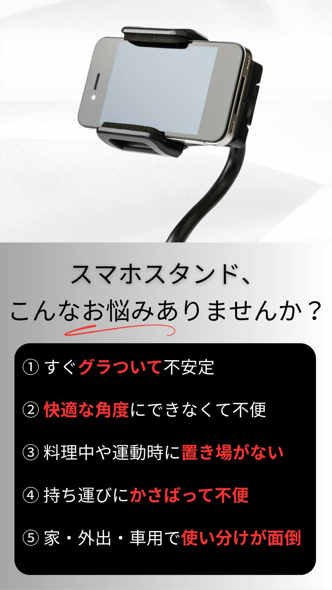 6. スマホの重さやサイズによっては、バランスが崩れる場合があります。安定した位置でご使用ください。