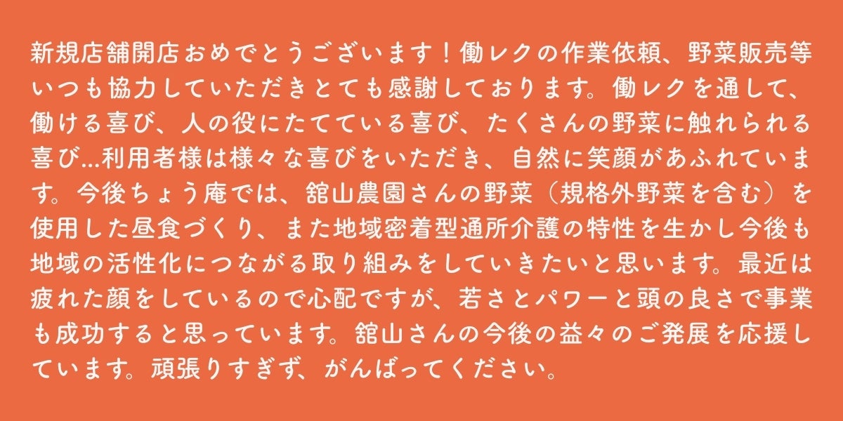 野菜のある日常が、少しだけやさしく、少しだけ楽しくなる。そんな風景を、このまちに広げていきたいのです。