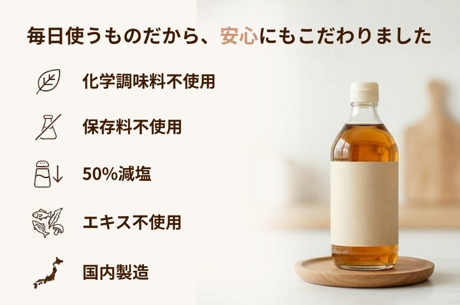 【20人限定】「だしつゆプロテイン」1本 ・容量:500mL(1本あたり) ・容器:ペットボトル ・保存方法:直射日光を避け、冷暗所に保存。開封後は要冷蔵。 ・賞味期限:製造日から約6ヶ月 ・原材料、主原料の原産地: コラーゲンペプチド(ゼラチンを含む)(国内製造)、しょうゆ(本醸造)(大豆・小麦を含む)、砂糖、風味原料(いわし、さば、かつお)、清酒、食塩、酵母エキス ・添加物表示、アレルギー表示:ゼラチン、大豆、小麦