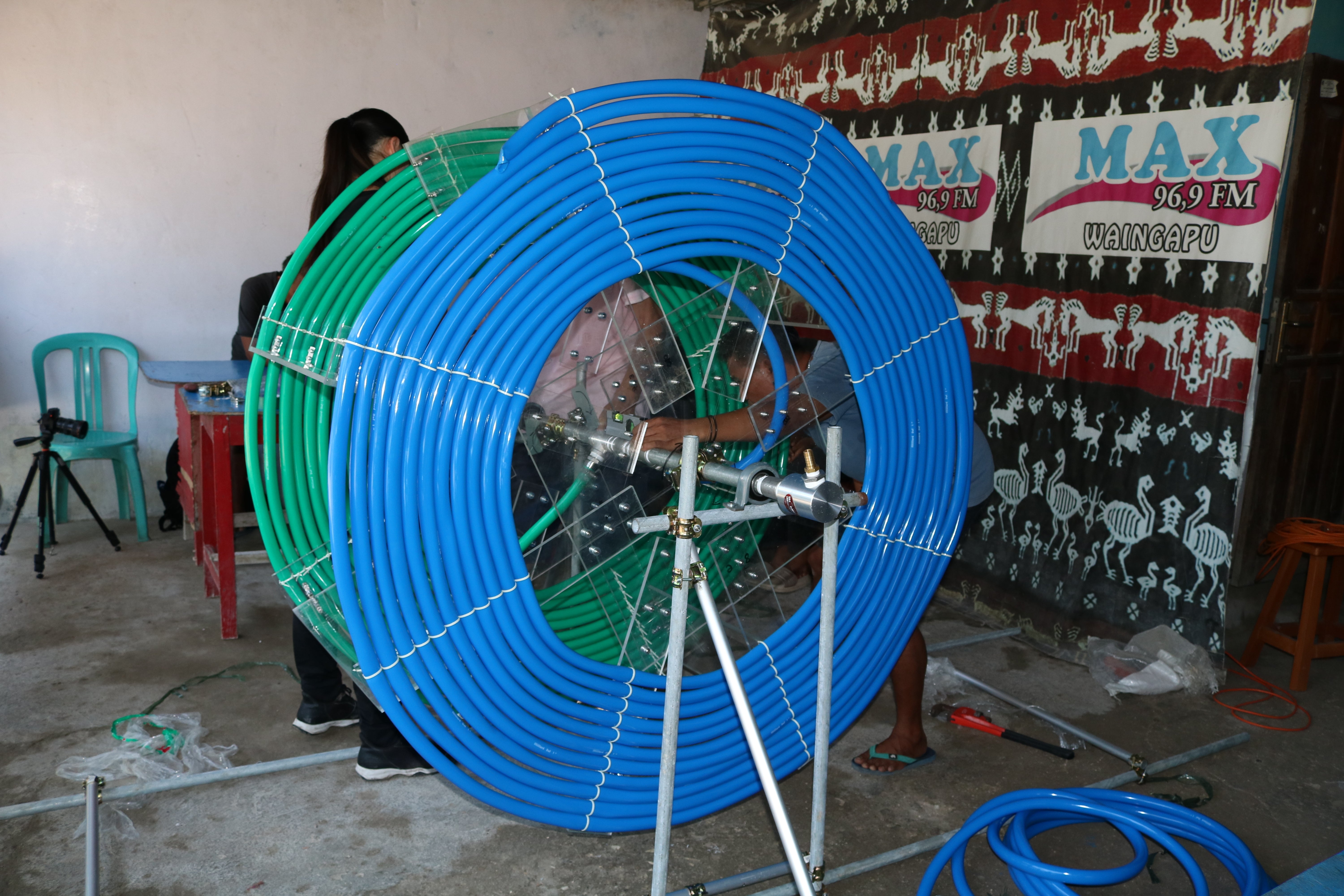 今回の挑戦は、40年かけて築き上げた「自立の循環」を未来へ繋ぐためのものです。これまでの支援を維持しながら、これまでに培った知識、技術、設備、農家グループなどを現地の人たちが自力で管理し続けるための「伴走」を私たちは続けていきます。さらに、新たに始めた、現地で組み立て・修理ができる給水用スパイラルポンプ※の設置なども、スンバ島で広げたいと考えています。皆様の温かいご支援をお願い申し上げます。