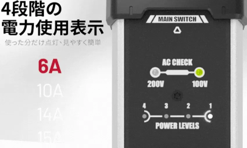 本体のデジタルモニターに、使用中の「電圧(V)」と「電流(A)」をリアルタイム表示。「あとどれくらい家電を同時に使えるか」が数字でわかるため、突然の停電リスクを賢く回避できます。