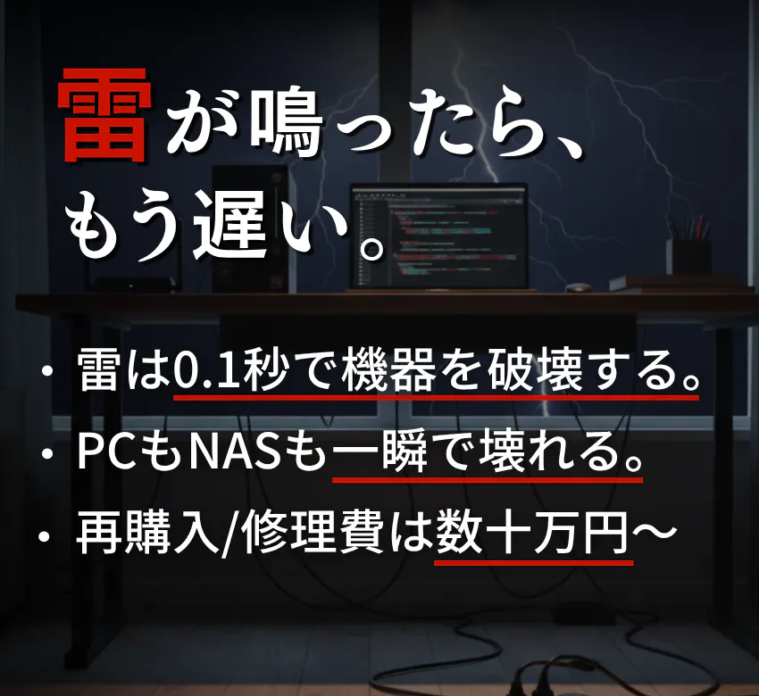 雷の夜も、繋ぎっぱなしで安心して眠れる「電子の盾」