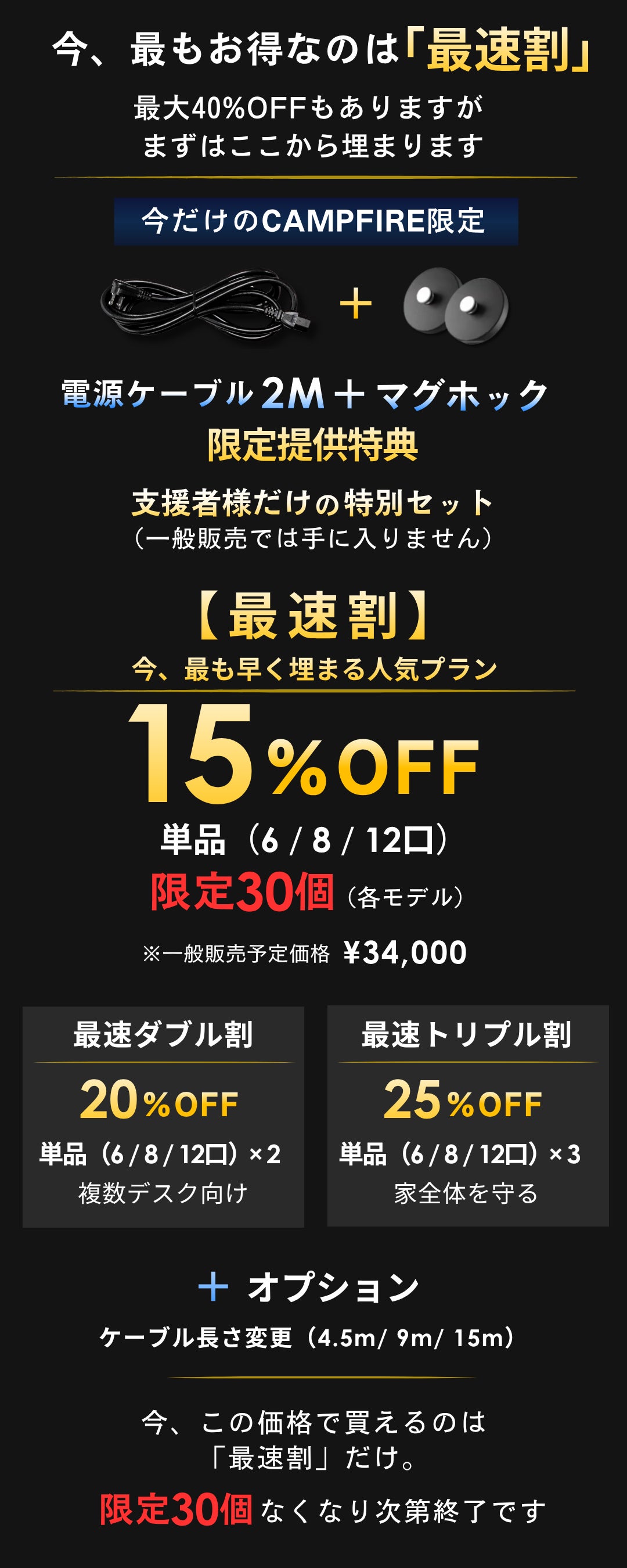 ※本プロジェクトを通して想定を上回る皆様からご支援を頂き、現在進めている環境から量産体制を更に整えることができた場合、正規販売価格が販売予定価格より下がる可能性もございます。