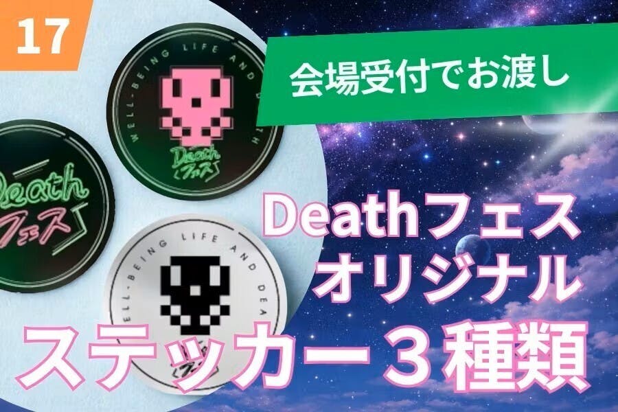 Helloデス!カツギテさわみかです。クラファンはじまって今日で9日。ご支援いただいた皆さま、ありがとうございます!いただいたメッセージの一つひとつ、ありがたく拝読しております。さて、リターンを追加したのでお知らせです。デスフェス公式キャラクターのガイコツ(ちなみに名前は”ざぶじゃん”と言います)と、ロゴの入ったオリジナルステッカー3種セット!中でもシルバーのホログラムステッカーは特に人気で、初年度はあっという間に完売。昨年は、アンケートに回答して下さった方と、4月14日がお誕生日の”よいしアドバイザー”(勝手に任命)のみにお渡ししたレア品です♪メンバーもこんな感じで貼って、Death活アピールしています。笑ぜひお仲間になってくださいね!ちなみに受け渡しは、「Deathフェス2026」会場でになります。