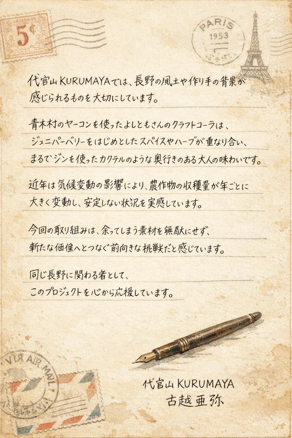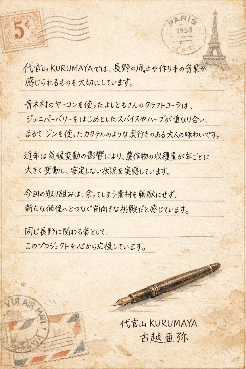 同じ長野県出身ということで、地元の食材を本当に大切に