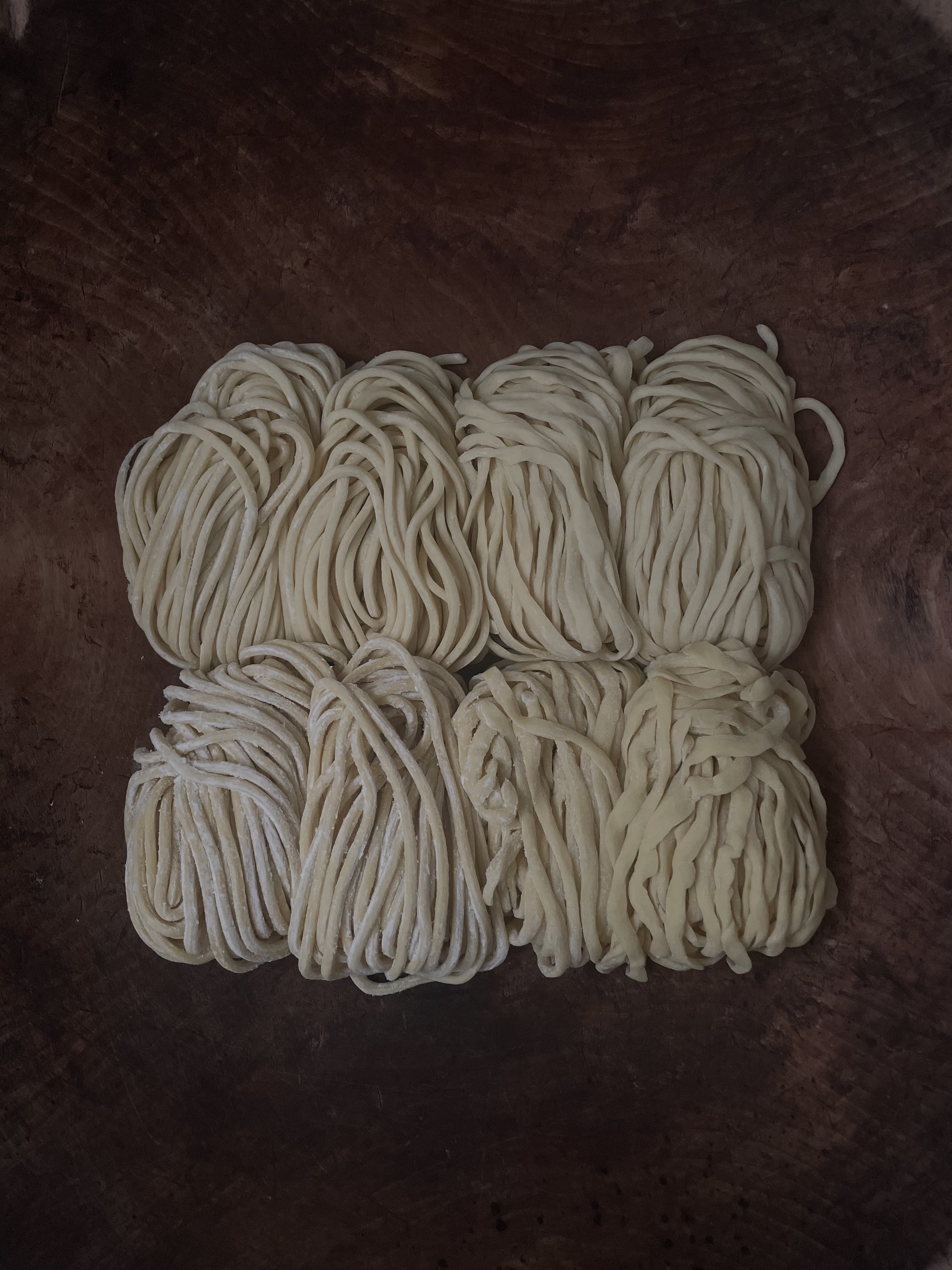製麺所は牧製麺所さん、味噌と醤油は塩屋醸造さんと