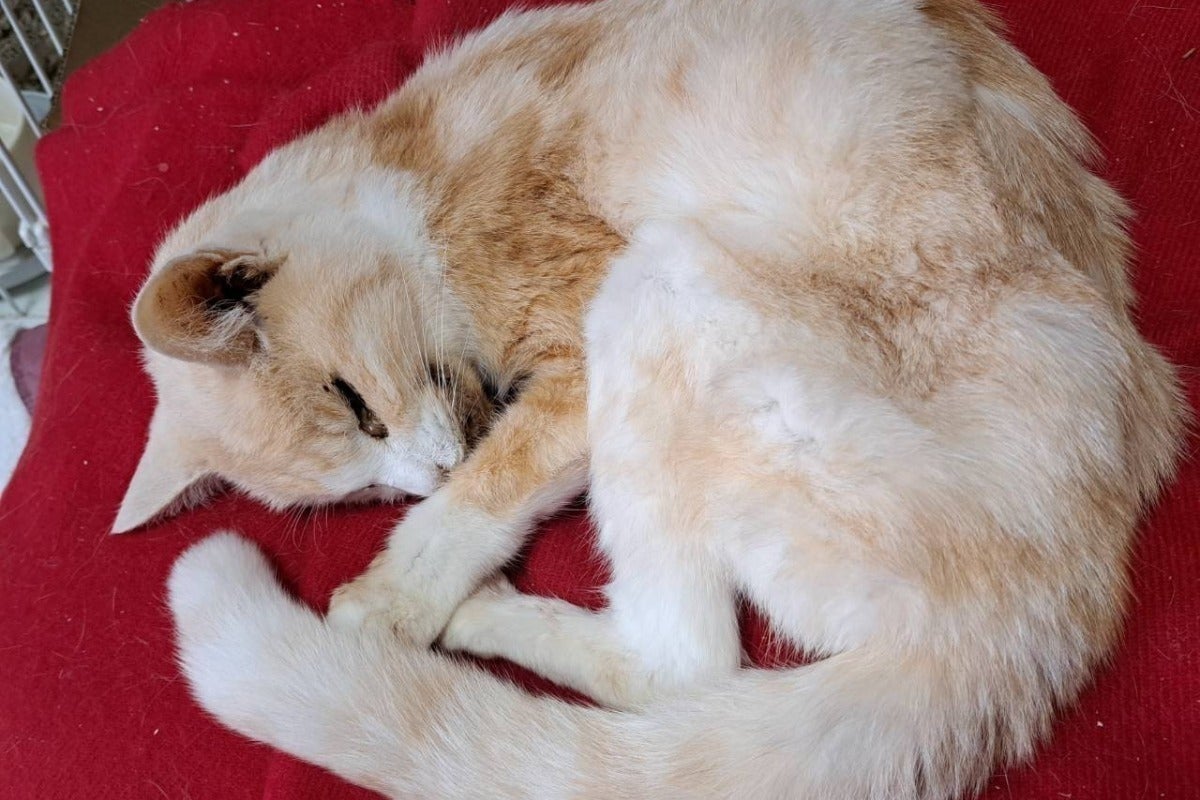 2年前に酷暑の時期に激やせの状態で保護しました。シニアの女子。
